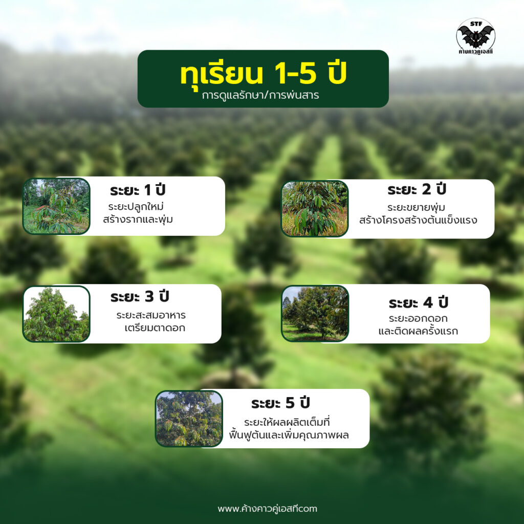 ตารางการใส่ปุ๋ยและป้องกันโรคแมลงในทุเรียน 5 ปีแรก