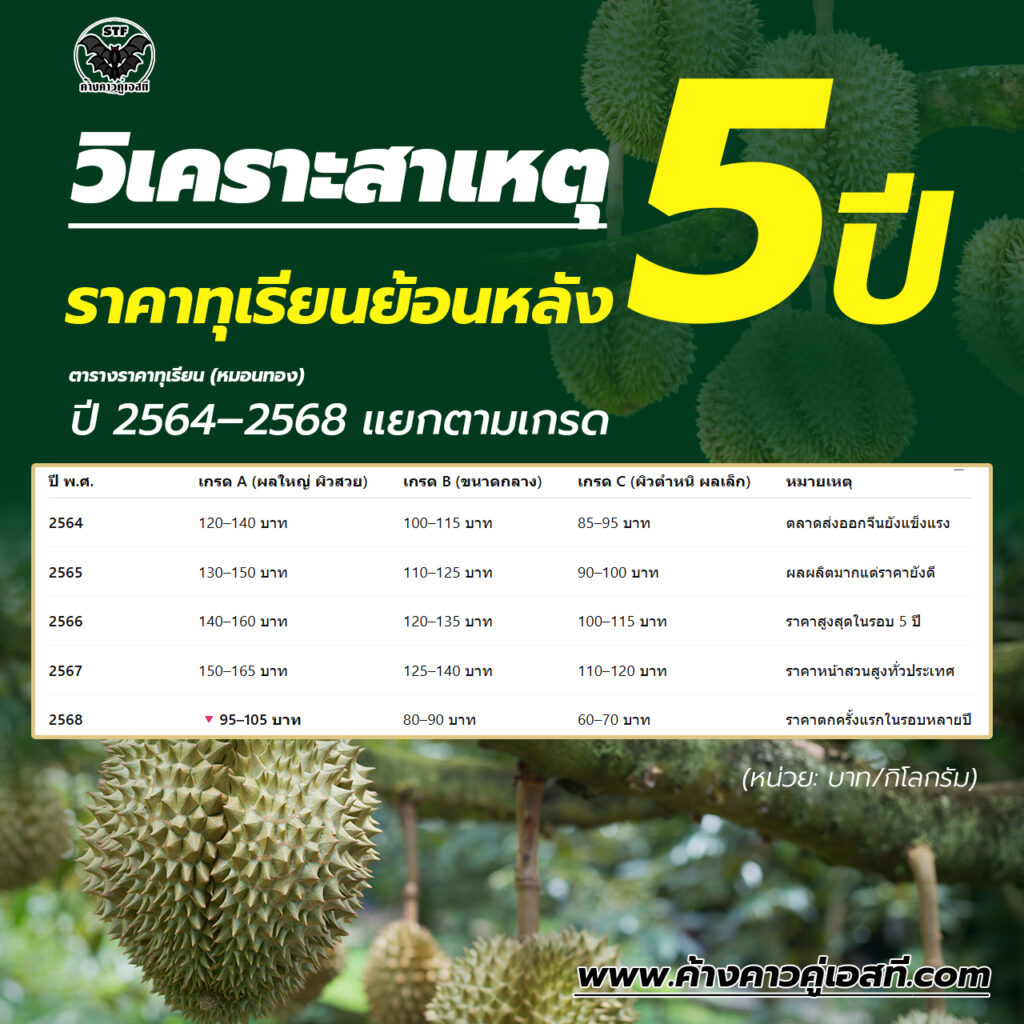 ทำไมราคาทุเรียนถึงตก? วิเคราะห์ราคาทุเรียนปี 2564–2568 (แยกตามเกรด)