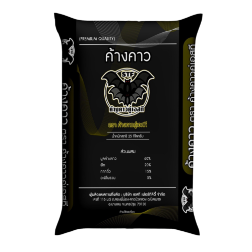 ปุ๋ยมูลค้างคาวสูตรเข้มข้น 60% แบรนด์ค้างคาวคู่เอสที เป็นสูตรพิเศษที่คัดสรรวัตถุดิบคุณภาพสูงจากธรรมชาติ เพื่อบำรุงพืชและปรับปรุงดินอย่างครบวงจร โดยมีมูลค้างคาวแท้ถึง 60% ซึ่งเป็นแหล่งฟอสฟอรัสอินทรีย์จากธรรมชาติ ช่วยเร่งราก กระตุ้นการแตกยอด ติดดอก และเพิ่มเปอร์เซ็นต์การติดผลได้อย่างดีเยี่ยม ผสมพีทมอส 20% เพื่อปรับโครงสร้างดินให้อุ้มน้ำได้ดี ร่วนซุย เหมาะแก่การเจริญเติบโตของราก กากถั่ว 15% ช่วยเสริมไนโตรเจนจากโปรตีนพืช ทำให้ใบเขียวเข้ม ลำต้นแข็งแรง และเติบโตเร็ว ปิดท้ายด้วยฮิวมิกและกรดอะมิโน 5% ที่ช่วยกระตุ้นการดูดซึมธาตุอาหาร สร้างภูมิต้านทาน และฟื้นฟูพืชจากภาวะเครียดหรือโรคได้อย่างมีประสิทธิภาพ จึงเหมาะกับพืชทุกชนิด โดยเฉพาะพืชสวนอย่างทุเรียน มังคุด มะม่วง และพืชผลทางการเกษตรที่ต้องการคุณภาพสูง ผลผลิตดี และปลอดภัยต่อผู้ใช้และสิ่งแวดล้อม